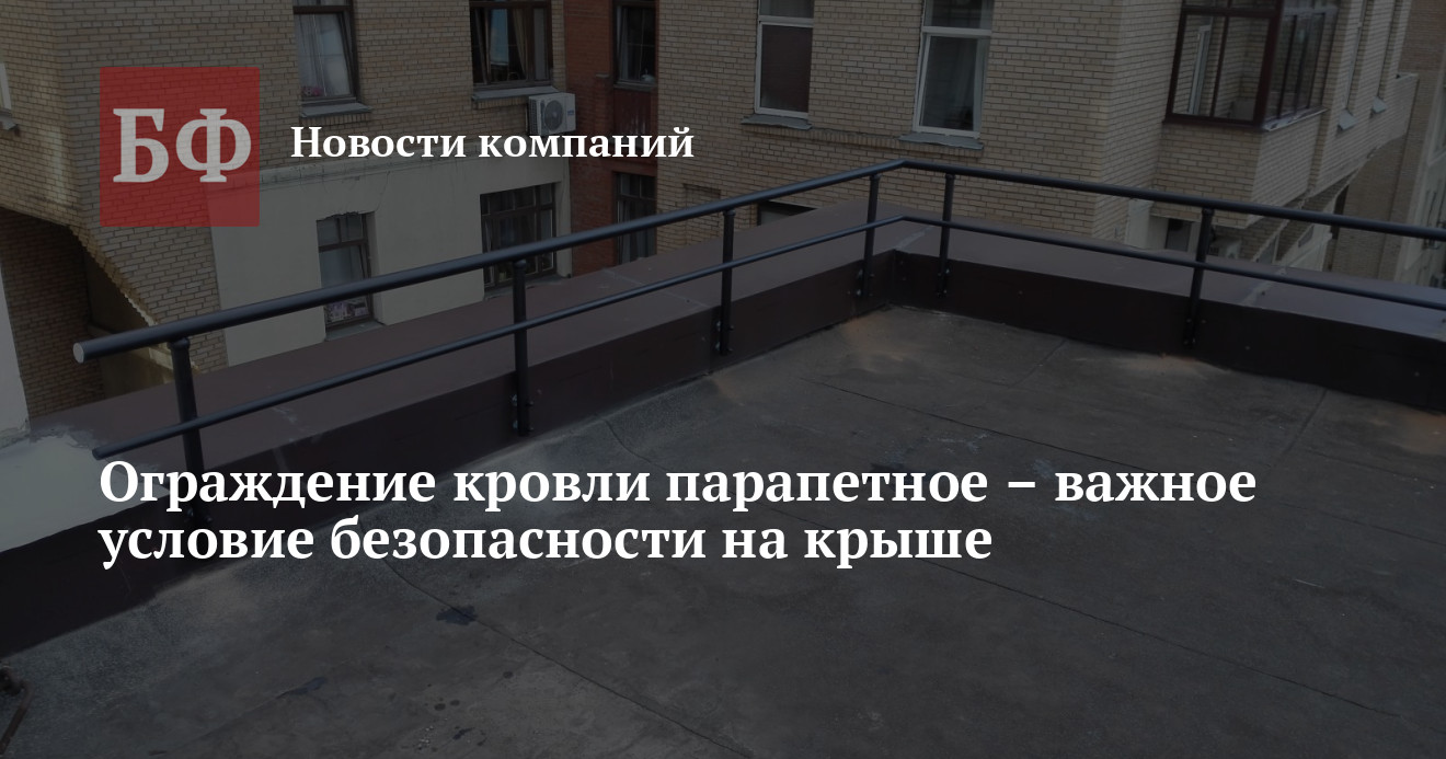 Парапет — это ограждение из кирпича, бетона или сэндвич-панелей (на быстровозводимых промышленных, общественных зданиях) по периметру плоских кровель. Не нуждается в установке дополнительных барьерных конструкции при минимально допустимой ГОСТом высоте в 600 мм для неэксплуатируемых крыш или 1200 мм для эксплуатируемых.