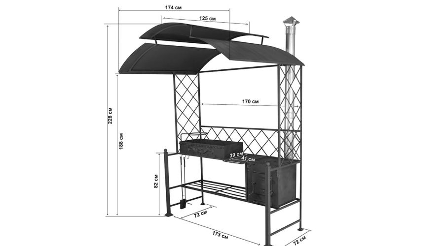 Немного увеличить размер мангала могут дополнительные элементы, не входящие в общий габарит — несъемные ручки для переноски, дополнительные полки для удобства размещения посуды и другие части конструкции.