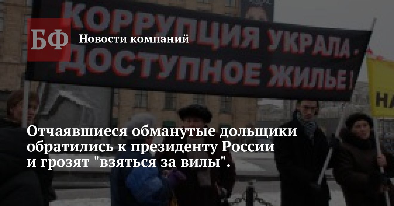«Дмитрий Анатольевич, мы хотим жить в правовом государстве и полностью поддерживаем Ваши инициативы, направленные на достижение этой цели. Вам, как юристу и правоведу, как никому другому, известно, что уважение к закону и государству начинается с дома и семьи», — пишут в своем обращении к президенту ставропольские дольщики. «Но удовлетворение указанного выше заявления прокуратуры, мы будем лишены наших законных прав и возможности воспитывать наших детей в принадлежащем нам жилье. Это, как ничто другое, разрушает доверие к государству, российским законам и к заявлениям на высшем уровне о необходимости соблюдения закона. Мы хотим жить по нормально действующим законам, а не браться за вилы, к чему нас принуждает безвыходность, произвол чиновников и коррупция. Надежды на местные власти у нас больше нет. Поэтому, мы призываем Вас разобраться в этой ситуации и дать завравшимся и коррумпированным чиновникам по рукам», говорится в обращении на имя президента России.