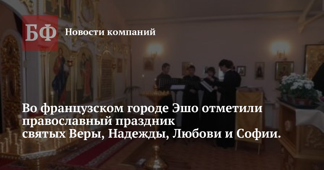 Надежды, Любови и матери их Софии у мощей святой Софии в Эшо, в церкви святого Трофима состоялось праздничное богослужение. По случаю древнего православного праздника в Эшо собрались иерархи и клирики Русской Православной Церкви из европейских городов: