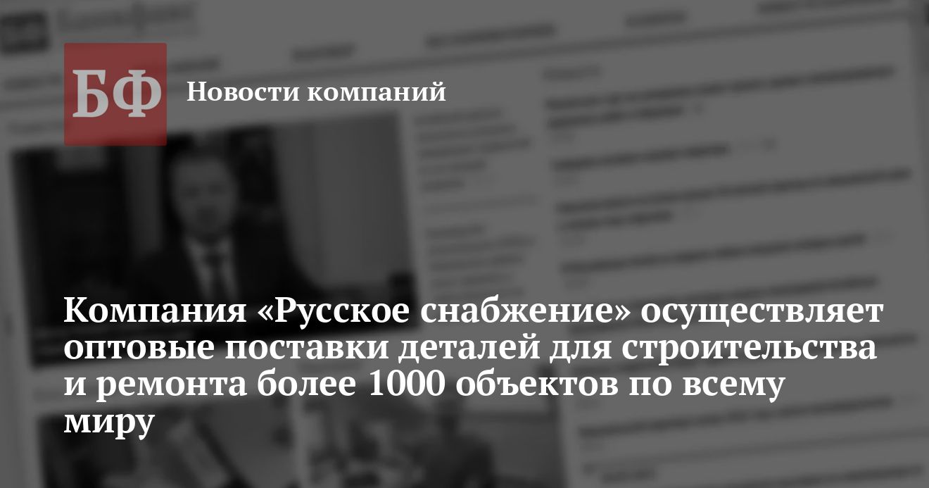 ЗАО «Русское снабжение» — стабильно и уверенно развивающаяся компания, занимающаяся на протяжении двенадцати лет, оптовыми поставками деталей и комплектующих, необходимых при ведении строительства или ремонтных работ в разных областях производства, например, в нефтяных, газовых, химических, атомных комплексов и др.