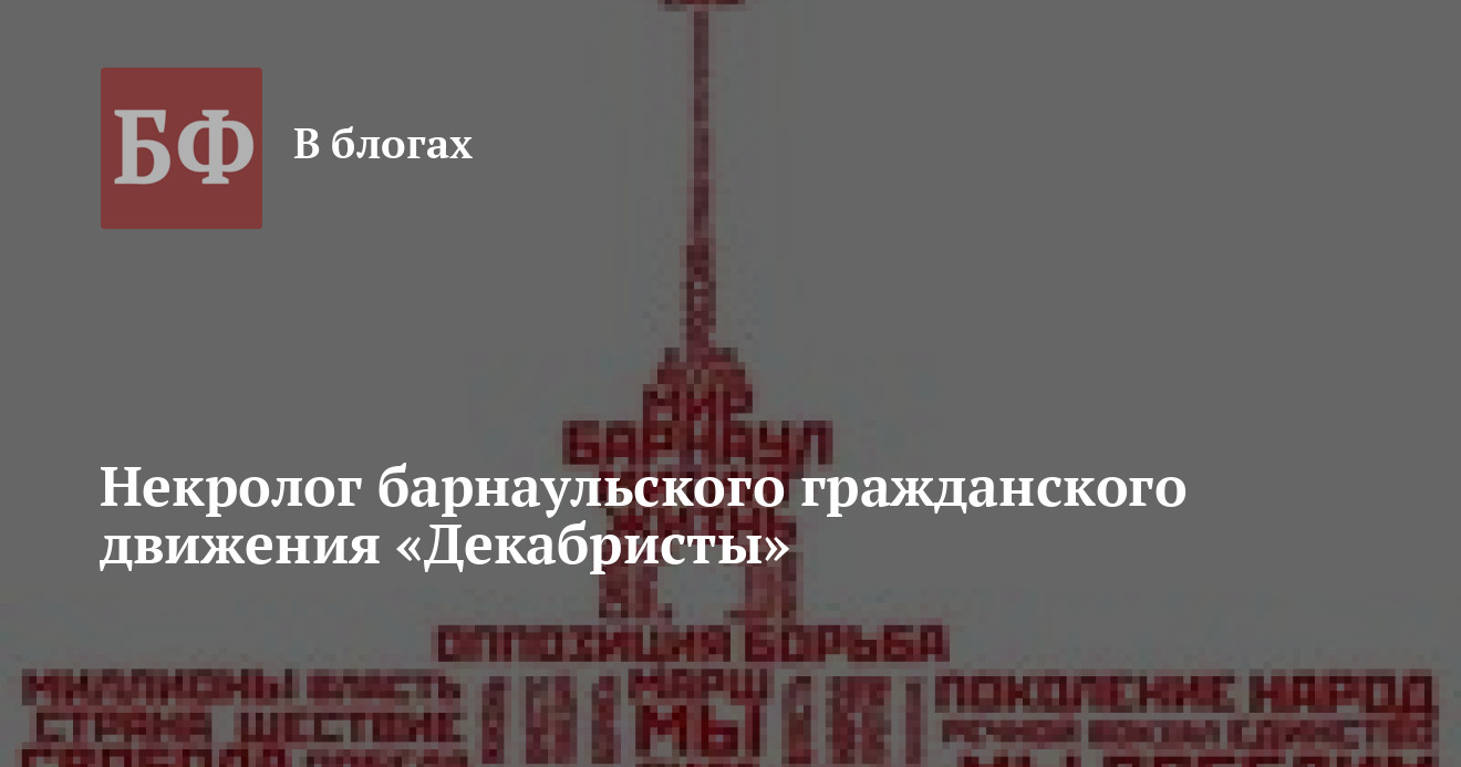 В январе гражданское движение «Декабристы» окончательно сформировалось в числе 15 человек — простых граждан, не имеющих, как ни политического, так и ни общественного веса в обществе, но желающих создать в Барнауле гражданское общество, в котором власть работает на благо народа, и соблюдаются конституционные права граждан. Первые акции «декабристов» были нацелены на то, чтобы заявить о себе как о исключительно гражданском движении, показать всю абсурдность борьбы власти с простыми гражданами, которые только и хотят всего лишь соблюдения своих прав и справедливого общества. «Декабристы» не претендуют на власть — они хотят лишь, чтобы власть работала на благо общества и была, как избираема обществом, так и подотчетна тем, кто ее выбрал.