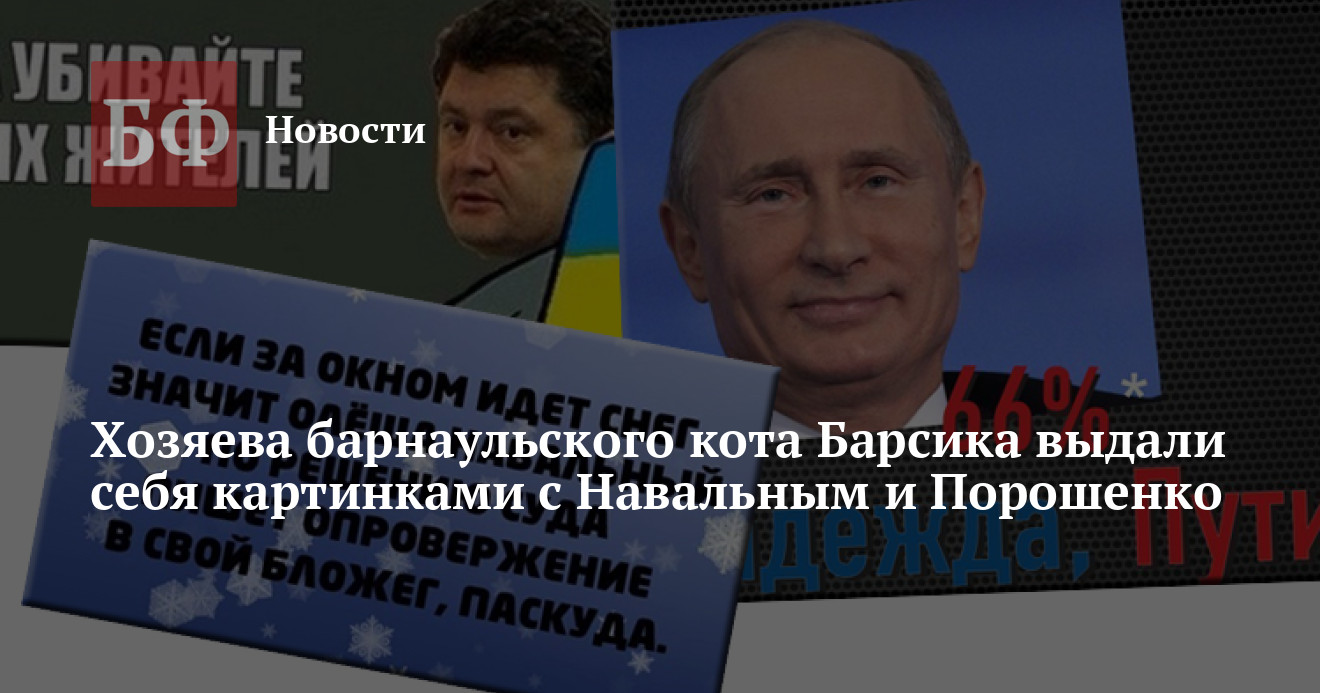 Политический окрас «хозяев» Барсика можно проследить по контенту страницы Алтайского Сеятеля. Созданный еще в 2012 году, задолго до появления мемичного кота, Сеятель методично публиковал картинки и фото с определенным и однозначным содержанием. Например, про то, что оппозиционер Алексей Навальный — «паскуда и клеветник», президент Украины Петр Порошенко дает приказы «убивать мирных жителей», а политики Геннадий и Дмитрий Гудковы «скучают по США». При этом среди постов Сеятеля есть и картинка с портретом улыбающегося президента Владимира Путина и подписью «Вера. Надежда. Путин».
