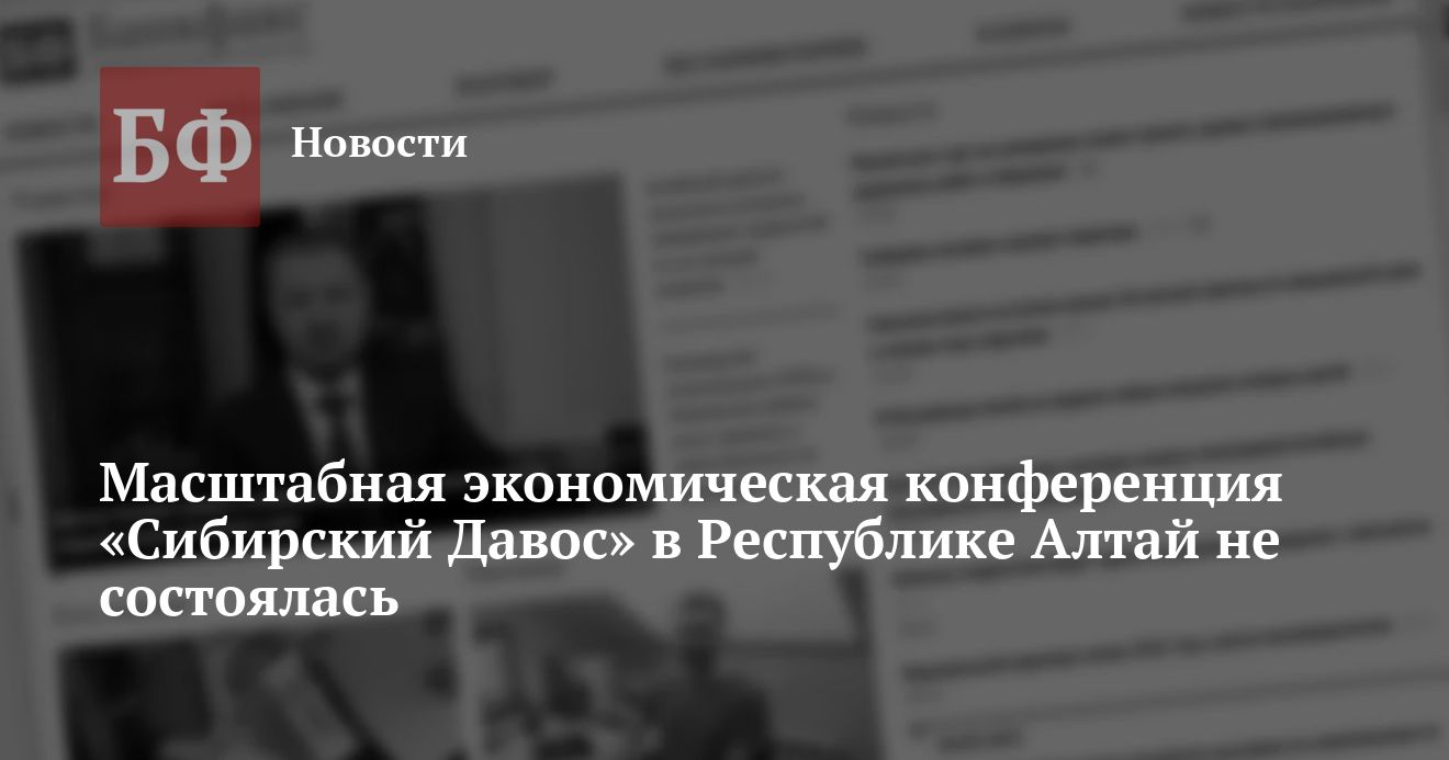 Традиционная экономическая конференция с участием российских и западных ученых, получившая название «Сибирский Давос», отменена. Это стало неожиданностью для организаторов, которые имели договоренности с одной из турбаз на территории Республики Алтай. Об отмене «Давоса» написал на своей странице в Facebook один из организаторов Станислав Андрейчук.