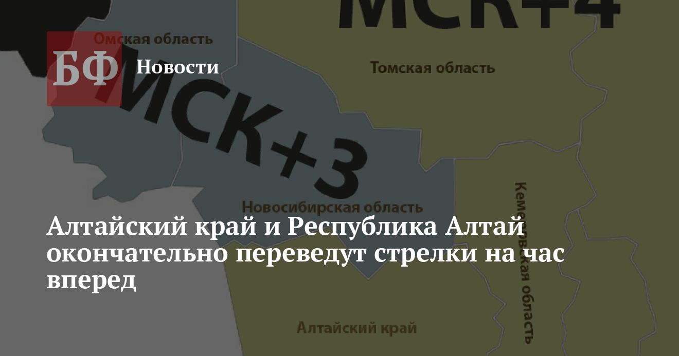 Вечером 26 февраля депутаты Госдумы во втором чтении приняли законопроекты о переходе Алтайского края и Республики Алтай в часовой пояс МСК +4 и одновременно утвердили их в статусе законов. «Два Алтая» официально переведут стрелки 27 марта в 2:00, следует из материалов на сайте нижней палаты российского парламента.