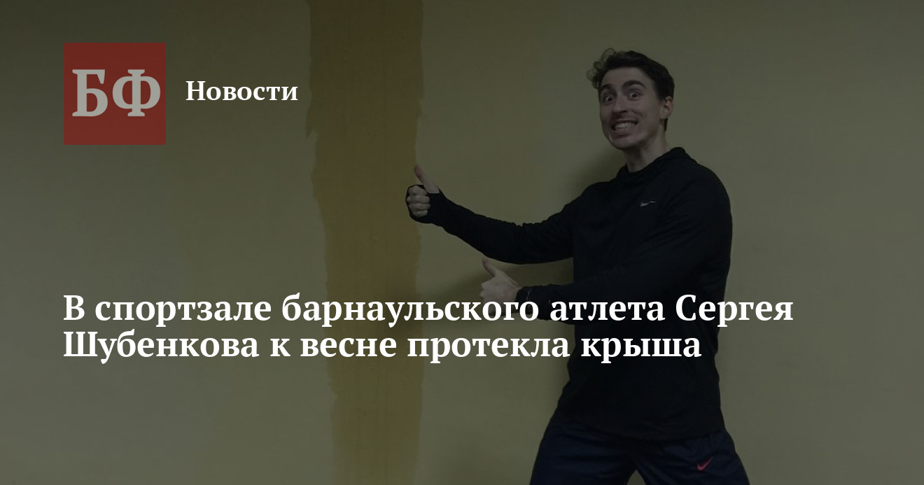 Прославленный барнаульский легкоатлет Сергей Шубенков вынужден заниматься в спортзале с протекающей крышей. Об этом он сообщил своим подписчикам в Instagram, сфотографировавшись у мокрой стены. Судя по всему, фото сделано в помещении СДЮСШОР-2 в нагорной части Барнаула, либо в тире училища олимпийского резерва.
