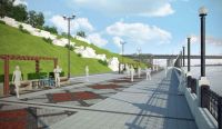 Сергей Тисленко предложил замостить тротуары плиткой, установить ограждения на основе каменных столбов с чугунным заполнением, добавить светильники, выделить дорожки для велосипедистов. На склоне разработчик предусмотрел лестницу с несколькими террасами, по которой можно подняться в Нагорный парк и попасть на его главную аллею. Спуски к воде также не перестраиваются, а лишь облицовываются гранитом.