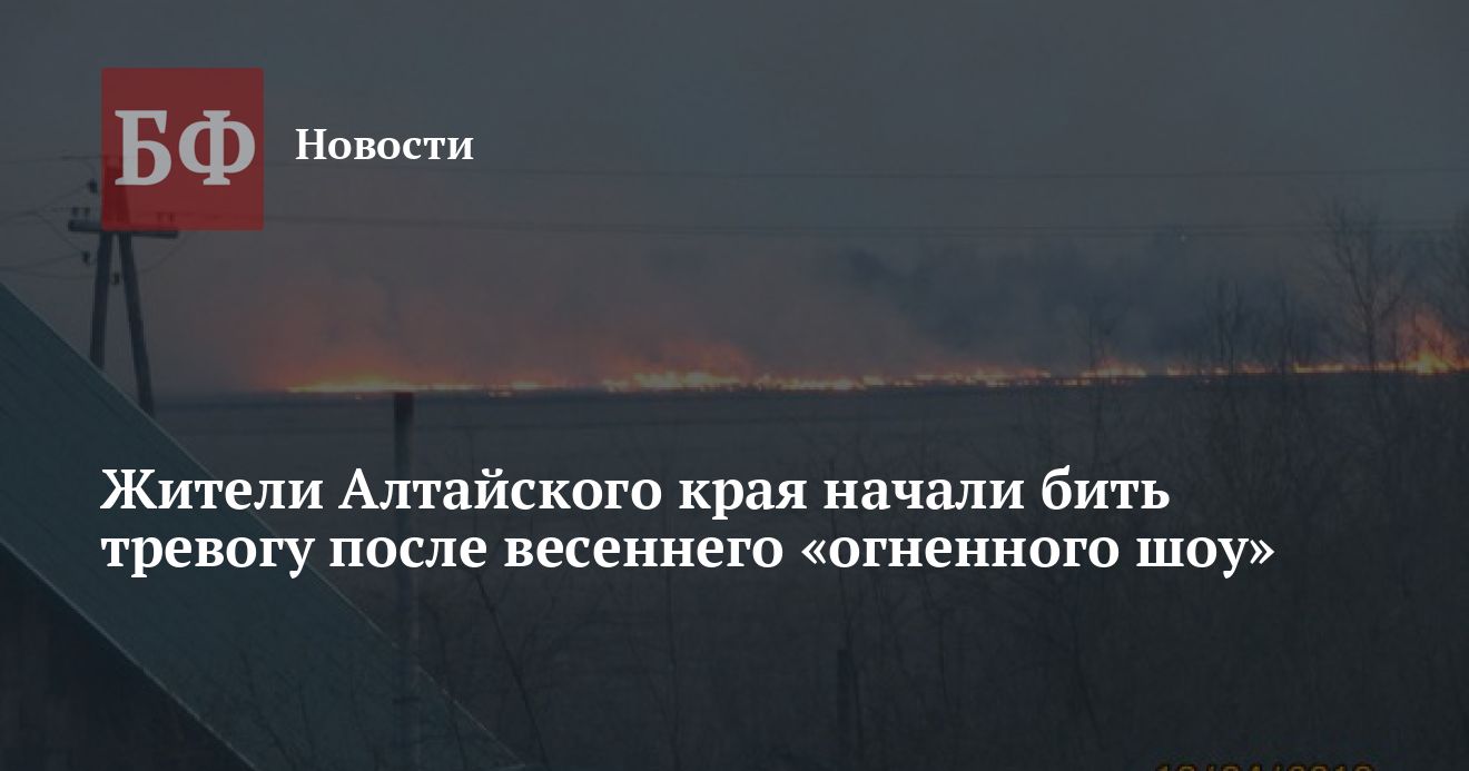 18 апреля сообщения о горящих полях близ различных населенных пунктов Алтайского края стали массово размещать подписчики паблика «ВКонтакте» Barnaul 22. В частности, речь шла о барнаульском поселке Центральный, трассе Барнаул — Бийск, а также лугах в Новоалтайске. Во всех случаях к огню оказались причастны люди, следует из публикации в группе.