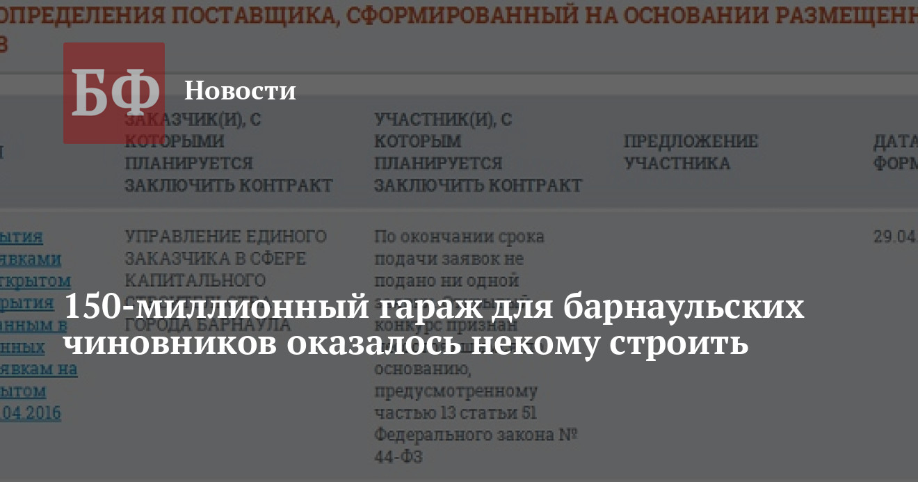 В Барнауле не нашлось подрядчиков, желающих возвести пятиэтажный гараж, предназначенный для автопарка администрации краевого центра. Как следует из информации с сайта Госзакупок, на аукцион не было подано ни одной заявки.