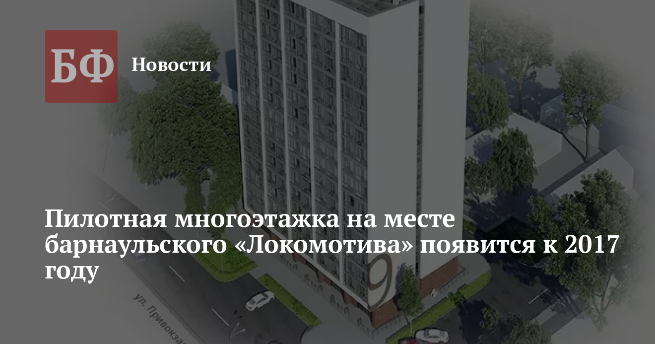 Первый жилой дом на месте барнаульского стадиона «Локомотив» должен появиться к сентябрю 2017 года. Застройщиком является ООО «Первый» (директор Евгений Ракшин), подрядчик — ООО «Селф», следует из проектной декларации МКД.