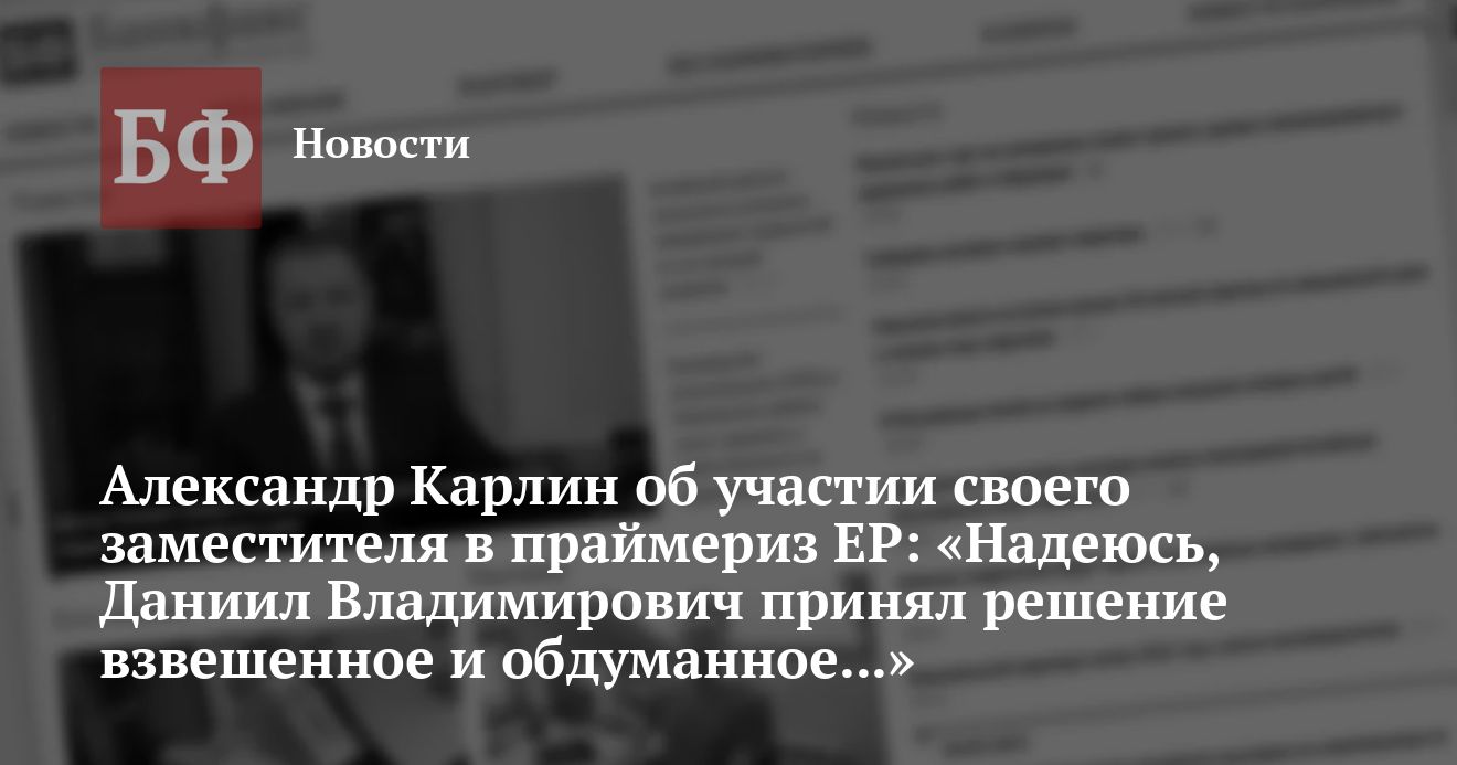 Кроме того, г-н Карлин выразил надежду на то, что г-н Бессарабов «принял решение взвешенное и обдуманное», и подчеркнул, что впереди у потенциального кандидата в думцы целый ряд этапов, включая предварительное голосование 22 мая.