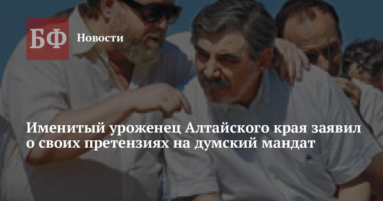 Уроженец Алтайского края, народный артист России Александр Панкратов-Черный намерен побороться за место в Госдуме. Такое заявление он сделал в эфире «Радио Балтика».