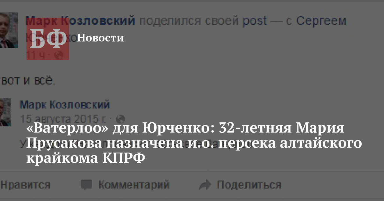 Судя по всему, решение ЦК было с облегчением встречено некоторыми функционерами КПРФ — действующими и бывшими. Так, депутат Алтайского Заксобрания Марк Козловский, ранее изгнанный из рядов партии, опубликовал на странице г-на Юрченко в Facebook сообщение, в котором не скрывает радости по поводу его отставки.