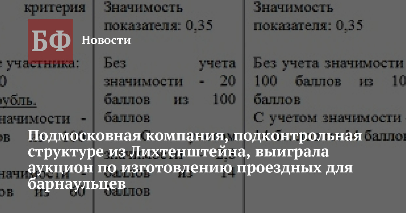 title="Подмосковная компания, подконтрольная структуре из Лихтенштейна, выиграла аукцион по изготовлению проездных для барнаульцев"
