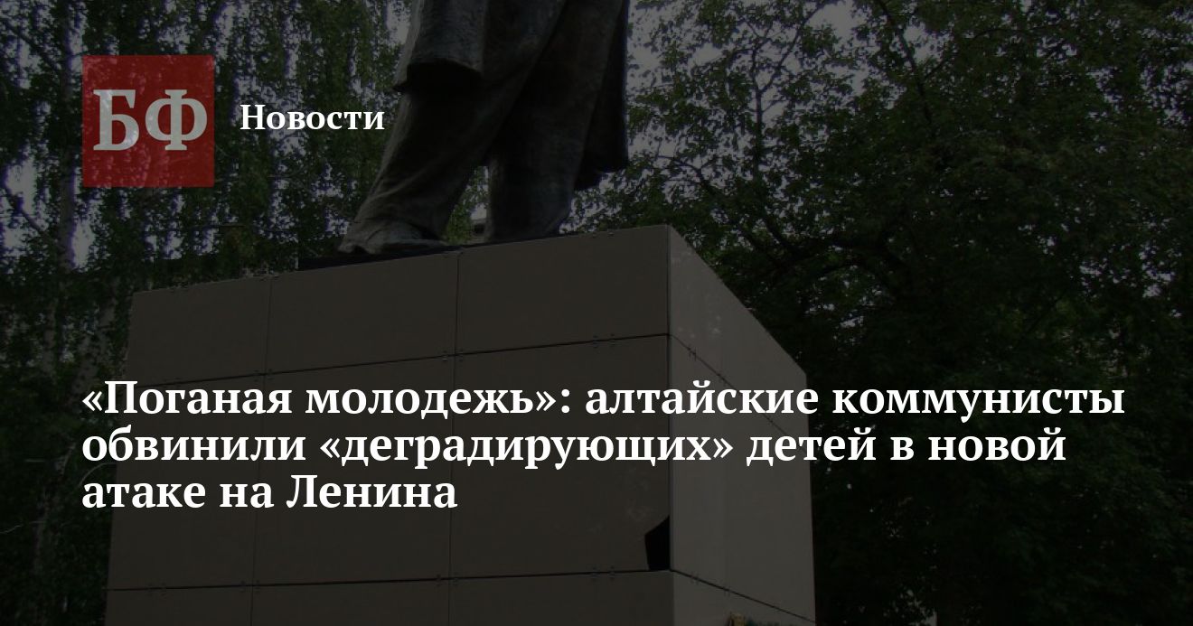 Всего через несколько дней после того, как молодой студент ПТУ сделал нацистскую надпись на памятнике Ленину в Бийске, монумент вновь атакован. Особый интерес в этой истории представляет реакция самих коммунистов, фактически назвавших всю современную молодежь деградантами и обвинивших подрастающее поколение в вандализме. Об этом сообщается на сайте реготделения КПРФ.