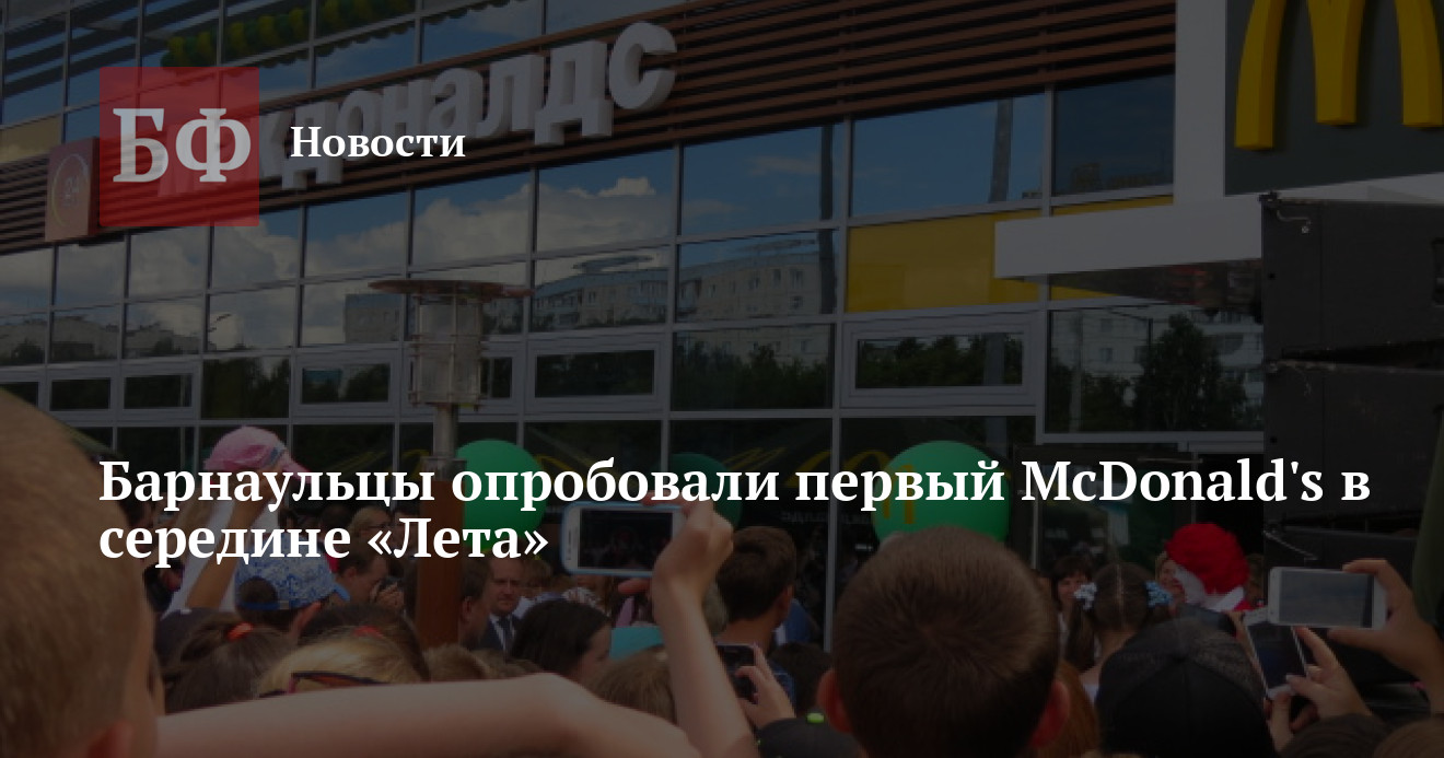 1 июля в барнаульском ТРЦ «Лето» состоялось открытие первого ресторана быстрого питания сети McDonald’s. Проект реализован новокузнецким ООО «ГиД», развивающим по франшизе сеть в СФО.