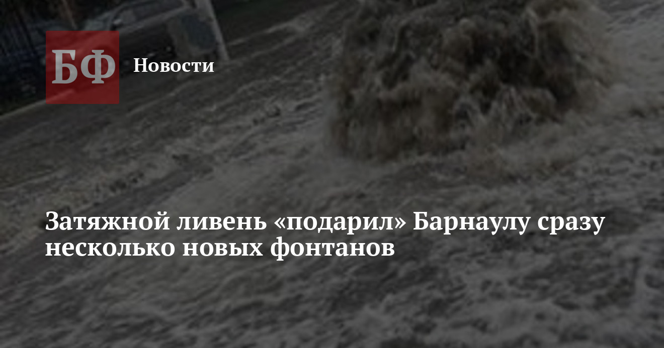 26 июля в Барнауле из-за продолжительного дождя центральные проспекты и улицы города уже традиционно превратились в «полноводные реки». Горожане в Сети жаловались на то, что ливневые канализации просто не справляются, поэтому в нескольких районах города фонтаны высотой более метра начали бить прямо из-под земли.