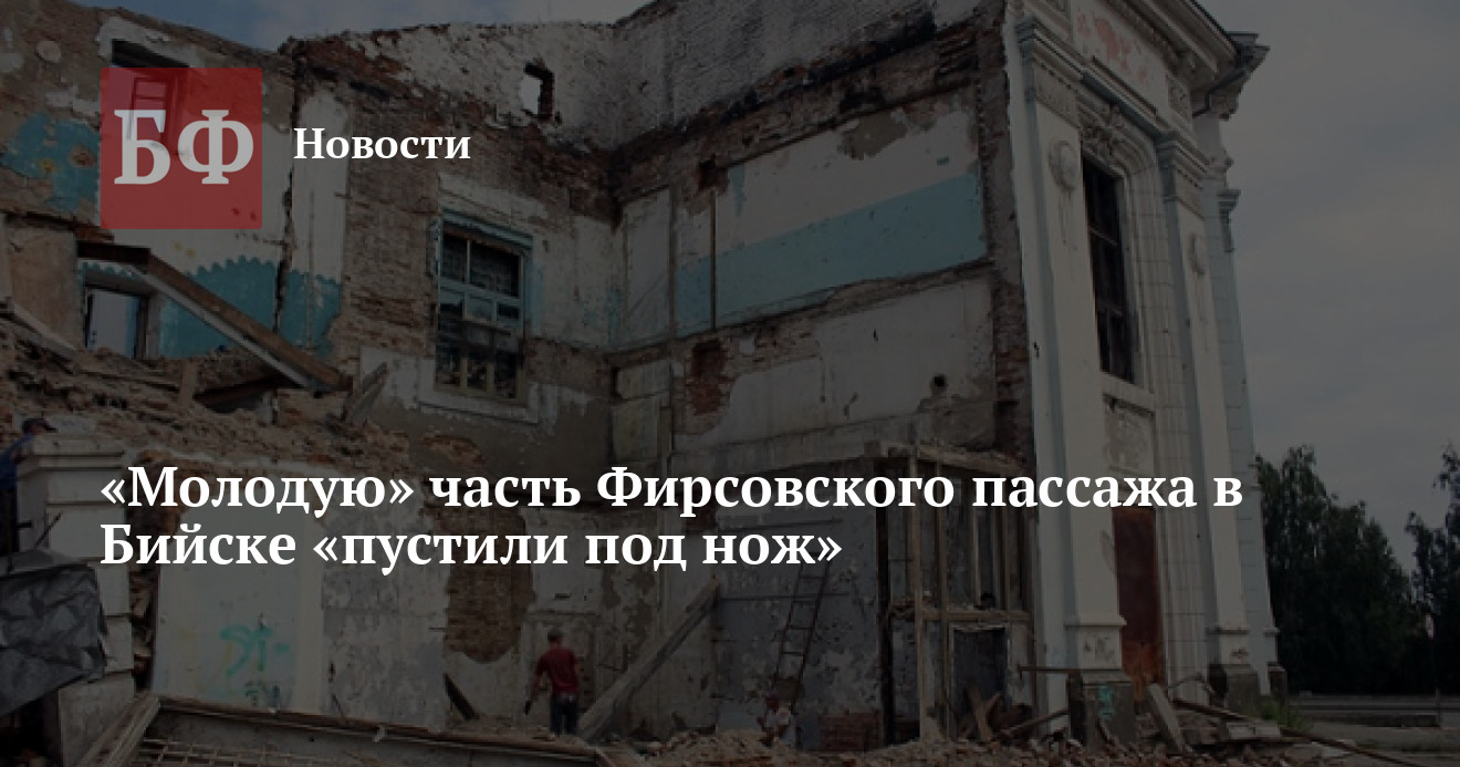 Известный памятник архитектуры в Бийске — Фирсовский пассаж — реставраторы пытаются спасти ценой демонтажа пристроек более поздних эпох. Купеческий особняк был возведен в начале XX века, однако уже к концу столетия фактически был брошен на произвол судьбы. А после разрушительного пожара 2007 года судьба сооружения и вовсе представлялась предрешенной — памятник культуры стал рассыпаться буквально на глазах. В текщем положении дел вокруг «архитектурной реликвии» попытался разобраться «Бийский рабочий».