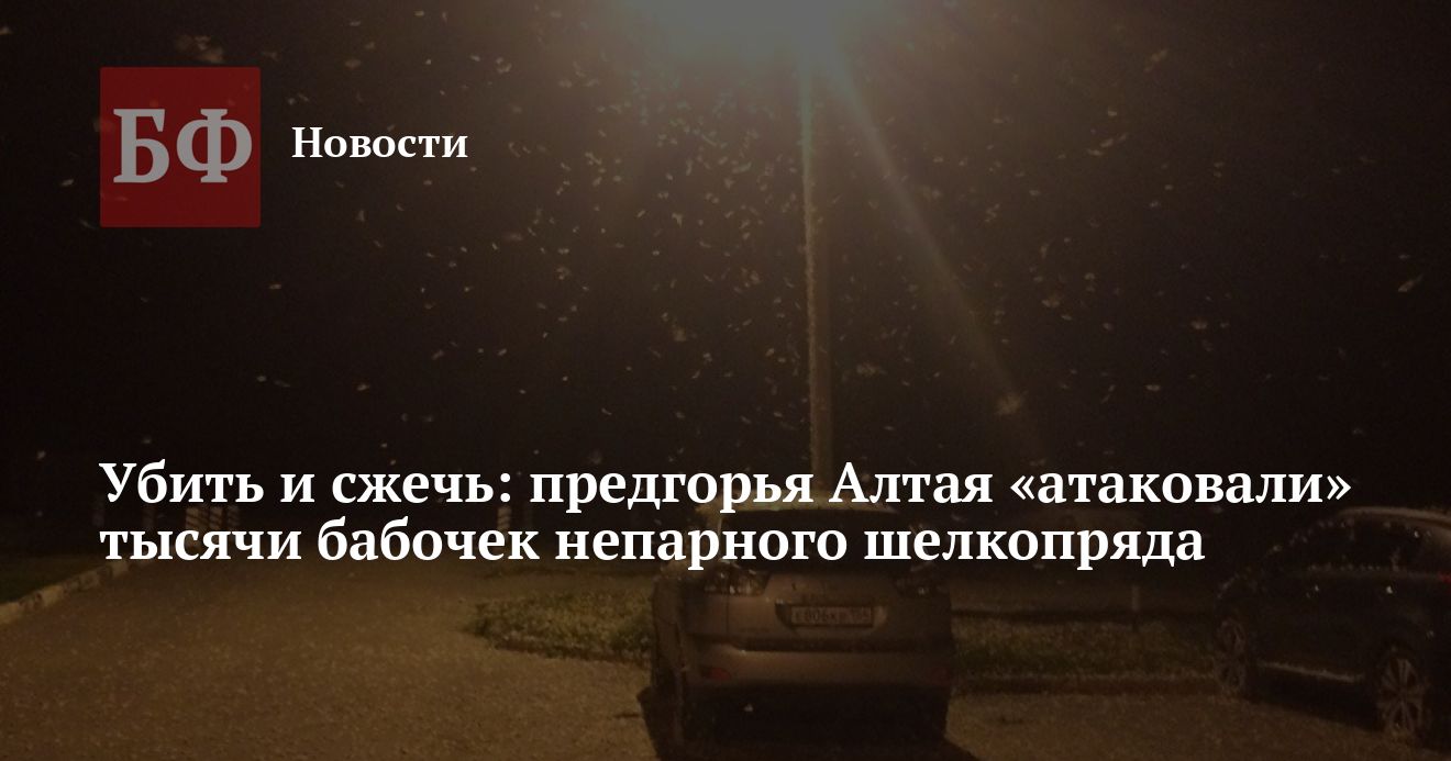 Жители Алтайского края и Республики Алтай вновь столкнулись с нашествием насекомых: на этот раз предгорья атаковали бабочки непарного шелкопряда, являющегося одним из главных вредителей хвойных лесов. Опасаться их не стоит, шелкопряда можно убивать, а скоро он погибнет сам. Местным жителям нужно всего лишь механически собрать их трупы и сжечь, чтобы избавиться от неприятного запаха, рассказала ИА «Банкфакс» доцент кафедры ботаники, зоологии, экологии и генетики ГАГУ Надежда Худякова.