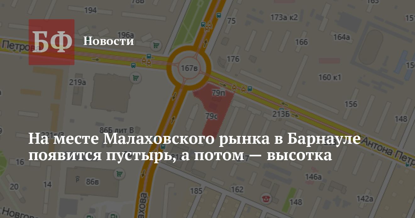 Фонд имущества Алтайского края объявил аукцион на право аренды участка на пересечении улиц Малахова и Антона Петрова в Барнауле. Когда-то на этом месте действовал Малаховский рынок, однако уже в ближайшие годы может появиться жилой дом высотой не менее девяти этажей. Об этом сказано на сайте Фонда.
