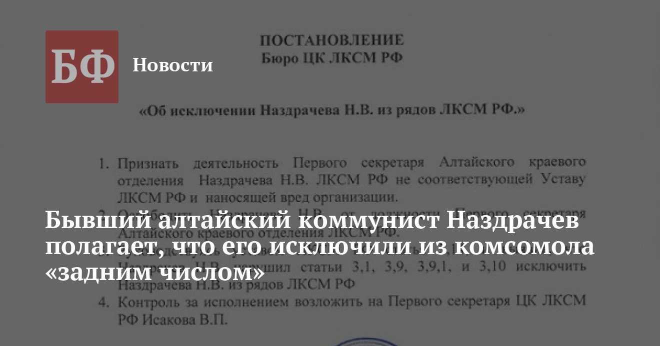 title="Бывший алтайский коммунист Наздрачев полагает, что его исключили из комсомола «задним числом»"