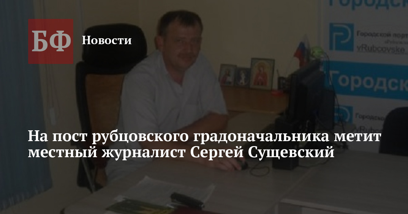 4 октября главный редактор сетевого издания «вРубцовске.ру» Сергей Сущевский заявил, что намерен принять участие в конкурсе на замещение вакантной должности главы администрации Рубцовска. Журналист пояснил, что его рабочее положение помогло ему увидеть многие городские проблемы изнутри, и теперь он готов их решать, сообщает его портал.