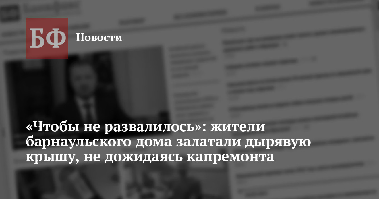 Жители дома по улице Чеглецова, 9 в Барнауле решили за свой счет отремонтировать дырявую кровлю и привести в порядок фасад. Капремонт крыши по плану должен быть выполнен в 2022 году, но собственники посчитали, что до этого времени без ремонта дом просто не доживет. Как объяснили ИА «Банкфакс» в УК «Старый Барнаул», которая обслуживает этот дом, подобная практика становится все более распространенной в краевом центре, где хватает изношенного жилья.