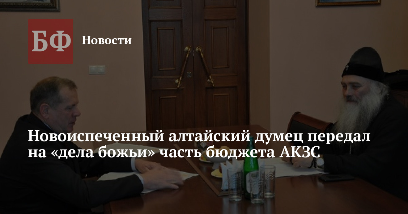 Свое решение думец озвучил в ходе недавнего визита в Барнаульское епархиальное управление. Судя по сайту Алтайской митрополии, встреча народного избранника и митрополита Сергия прошла 28 октября в краевом центре. Круг вопросов, поднятых в разговоре между двумя высокопоставленными лицами, обозначен не был. Единственное, что можно понять из короткого сообщения, это тот факт, что Иван Лоор попал в нижнюю палату российского парламента при поддержке Господа.