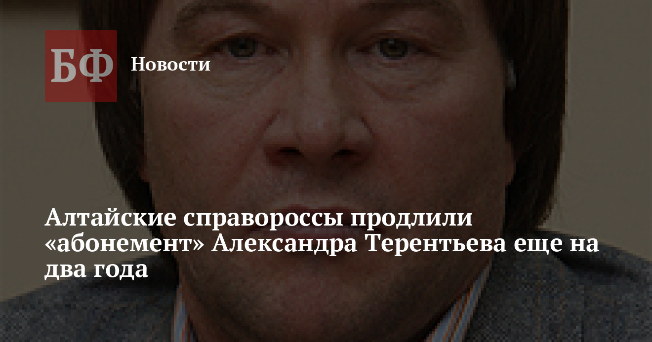 25 ноября реготделение «Справедливой России» в Алтайском крае переизбрало думца Александра Терентьева в качестве председателя местной ячейки партии. Решение было принято в рамках краевой конференции.