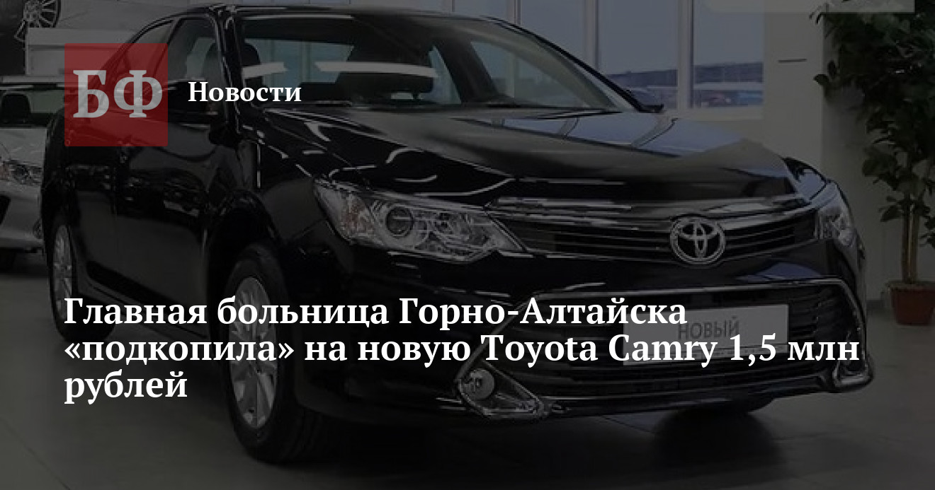 Республиканская больница в Горно-Алтайске решила приобрести для собственных нужд Toyota Camry в комплектации Comfort. Руководство учреждения готово выложить за новый автомобиль 1,537 млн рублей. Источник финансирования — «средства от иной, приносящей доход деятельности».