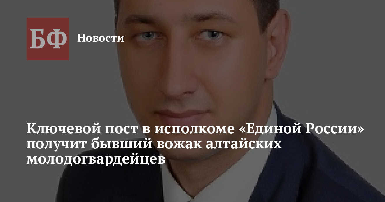 В конце текущей недели в реготделении «Единой России» в Алтайском крае произойдет знаковая перестановка. Место руководителя регионального исполнительного комитета ЕР Евгения Суворова, перешедшего на работу в крайизбирком, займет его первый зам, экс-лидер алтайского МГЕР 26-летний Евгений Шадринцев.