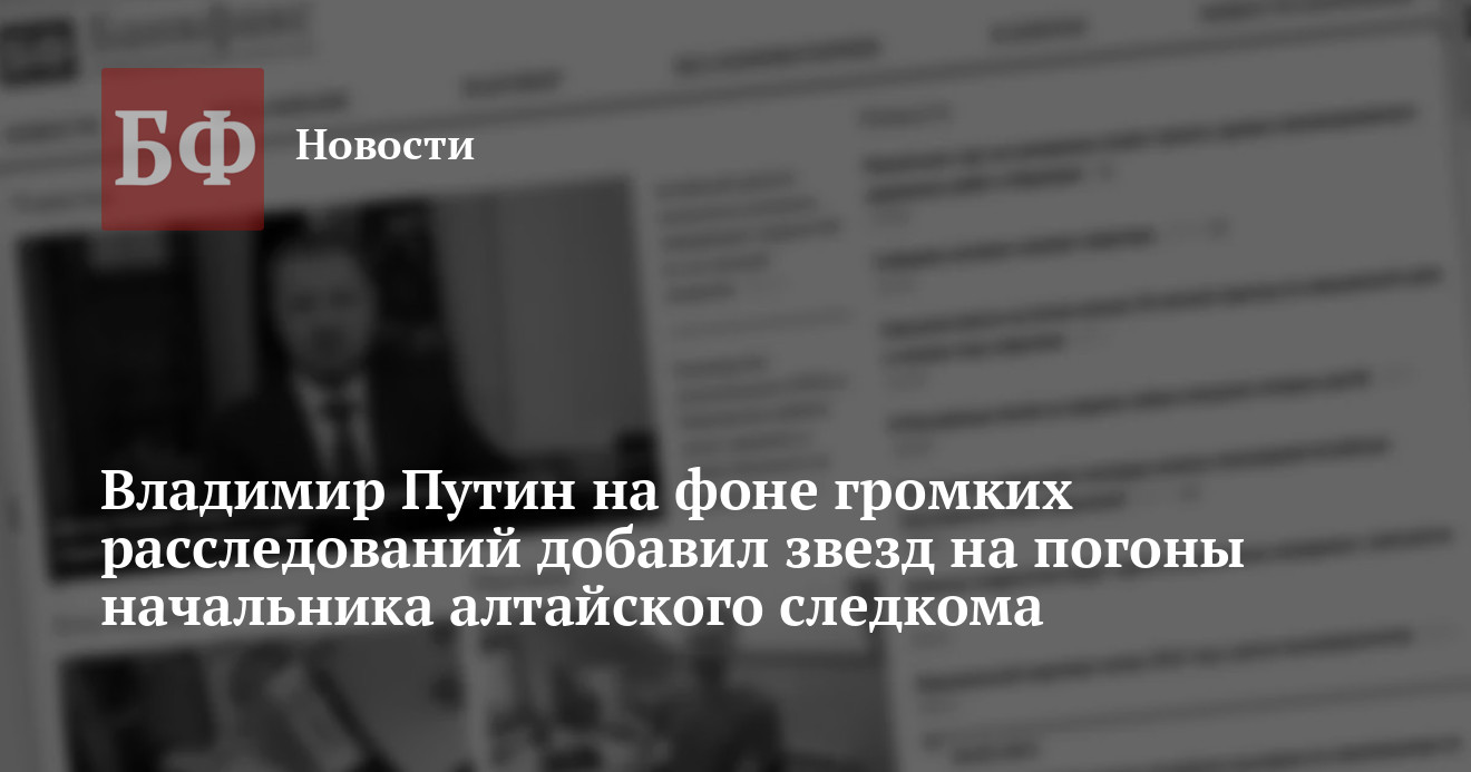 ...Президент России Владимир Путин подписал указ о присвоении очередных званий руководителю СУ СКР по Алтайскому краю Евгению Долгалеву и его заместителю Вячеславу Росщупкину....