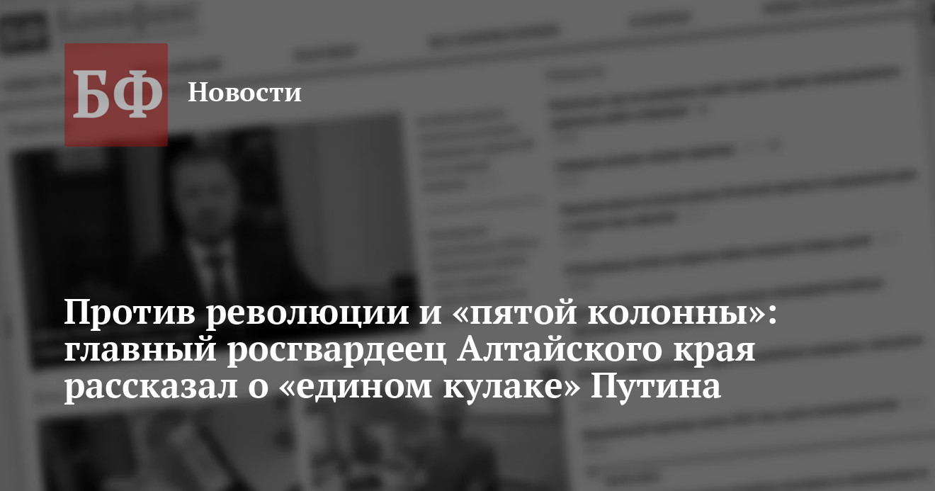 Федеральная служба войск национальной гвардии России (Росгвардия) была создана по распоряжению президента Владимира Путина, вероятнее всего, для подавления деятельности «пятой колонны» и возможных революционных настроений, инспирированных из-за рубежа. Такое мнение 15 декабря на брифинге для журналистов высказал начальник управления Росгвардии по Алтайскому краю Александр Мауль.
