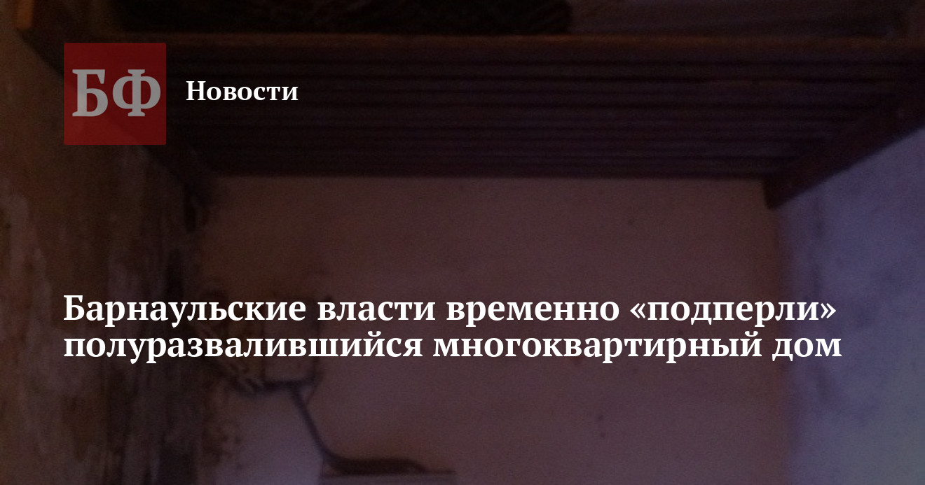 Жительница Барнаула Валерия Козлитина поделилась развитием ситуации с частичным обрушением потолка в ветхом доме по адресу Телефонная, 36 . Она рассказала, что представители обслуживающей здание УК поставили специальные подпорки, и на этом помощь жильцам пока закончилась.