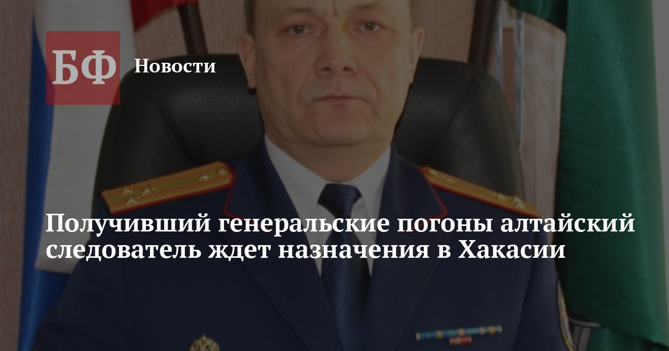 Первый заместитель руководителя следственного управления СКР по Алтайскому краю Вячеслав Росщупкин может возглавить СУ СКР по Хакасии. Отметим, что менее месяца назад ему было присвоено генеральское звание. О назначении как о состоявшемся, но пока официально не подтвержденном факте, пишут сразу несколько СМИ Хакасии, в том числе сюжет на эту тему вышел в эфире ГТРК «Хакасия».