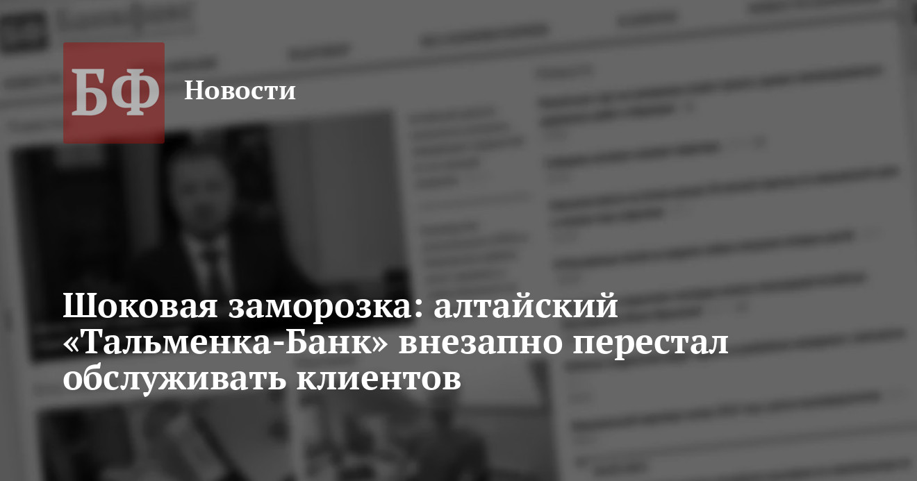«Тальменка-Банк» — скромный по своим балансовым показателям финансовый институт из Алтайского края — 18 января приостановил операции по счетам физических и юридических лиц. Об этом сообщает портал «Банки.ру» со ссылкой на головное отделение финучреждения в Барнауле.
