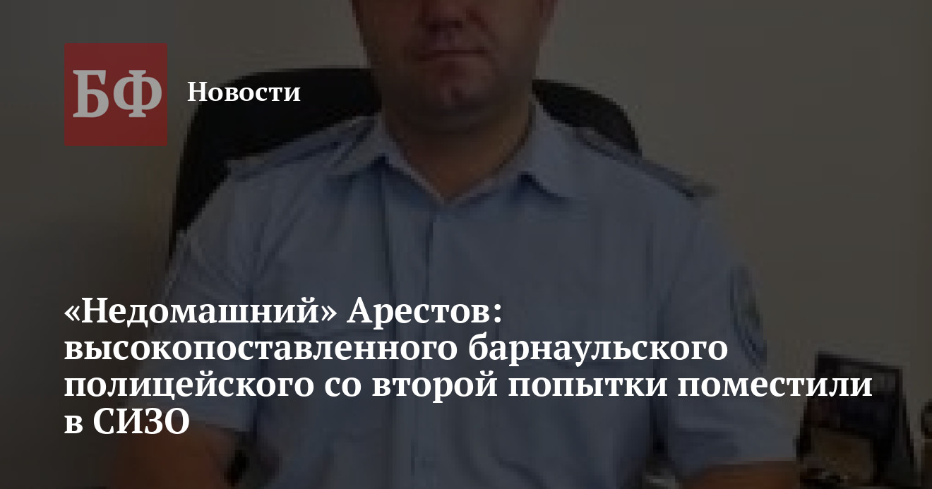 Алтайский краевой суд 2 февраля удовлетворил апелляцию прокуратуры на решение Октябрьского районного суда в отношении замначальника УМВД Барнаула подполковника юстиции Андрея Арестова. Мера пресечения изменилась: вместо домашнего ареста высокопоставленный полицейский проследует в СИЗО.