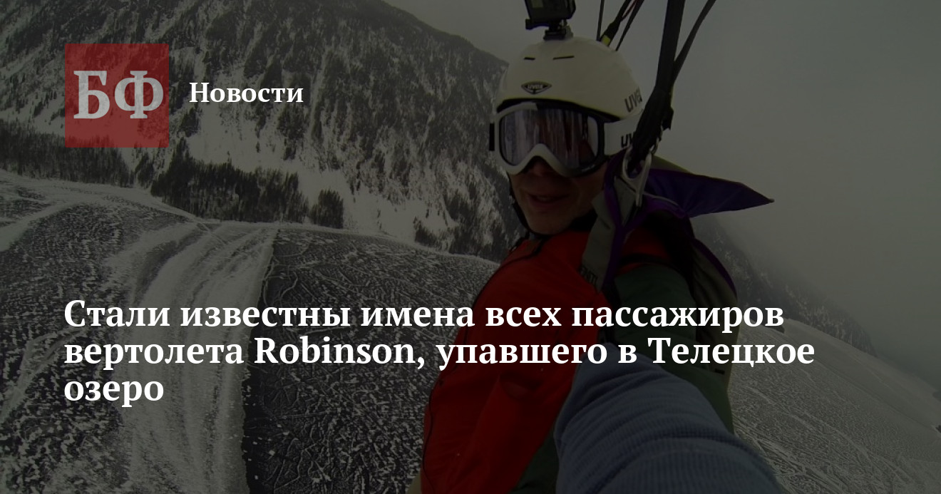 title="Стали известны имена всех пассажиров вертолета Robinson, упавшего в Телецкое озеро"