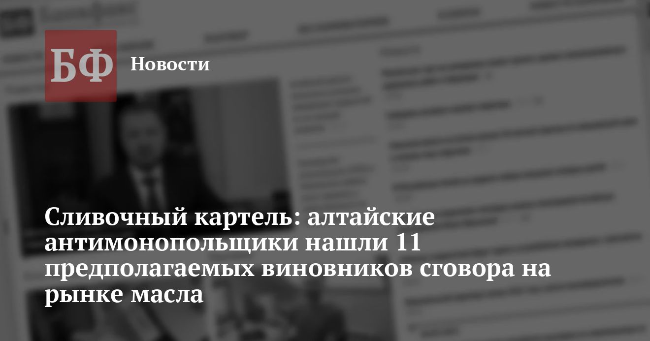 УФАС по Алтайскому краю возбудило дело в отношении 11 хозяйствующих субъектов: наиболее крупных производителей и оптовых продавцов сливочного масла, сказано на сайте антимонопольщиков. Это было сделано на основании анализа обоснованности повышения цен на продукт. В числе потенциальных нарушителей — Рубцовский молочный завод, «Брюкке» и Барнаульский молочный комбинат.