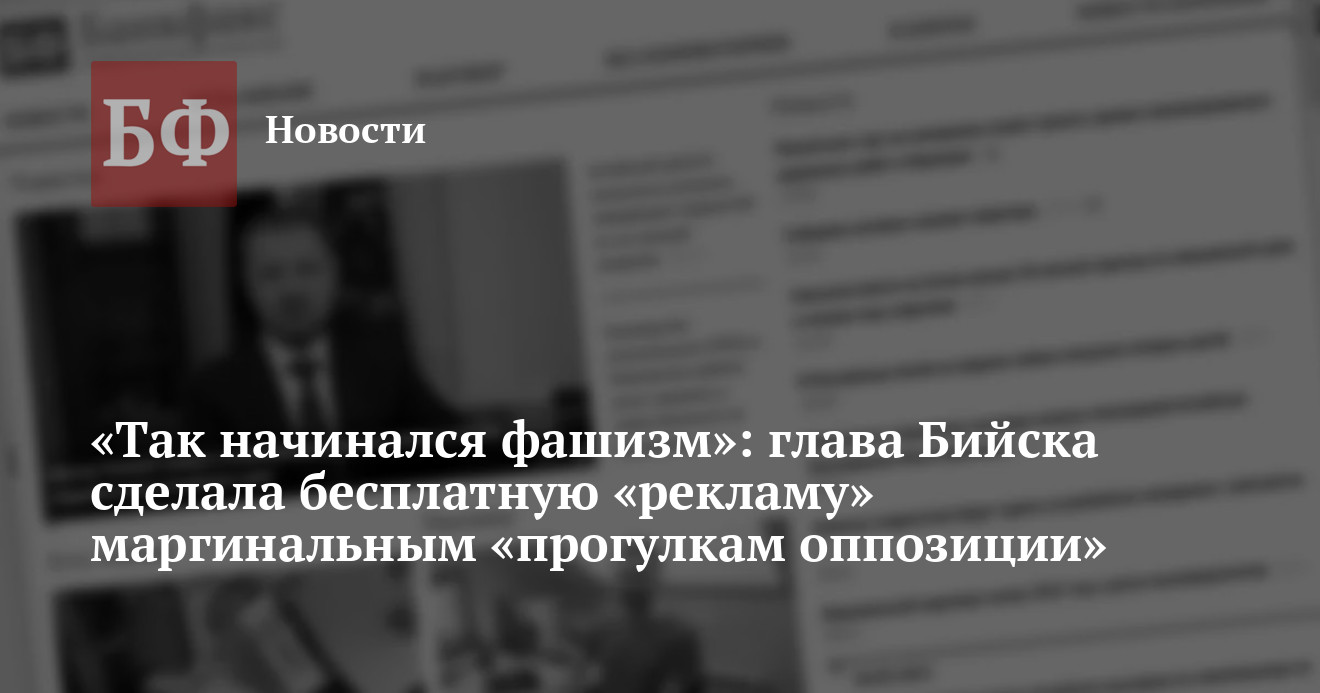 Глава Бийска, председатель гордумы Лидия Громогласова на заседании Общественной палаты города подвергла серьезной критике акции местных активистов, которые до того не были особо обласканы вниманием. На публичном мероприятии она заявила, что «так начинался фашизм», чем фактически сделала рекламу так называемым прогулкам оппозиции. Ее высказывания приводят «Бийские ведомости».