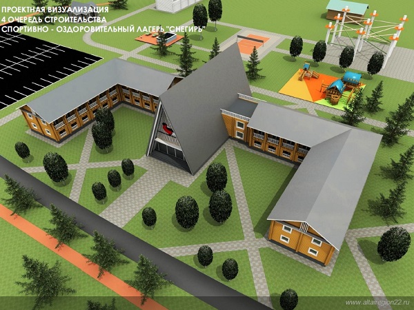 Всего запланированы четыре этапа строительства. I очередь — база «У озера». На территории возведут кафе с досуговым центром, магазин, детский городок, пляж, оборудованный деревянными настилами-лежаками и оборудованием для вейкбординга, площадки для барбекю, пункт проката, две бани, гараж, хозблок и парковку, а также гостиничные корпуса на 356 мест. II и III очереди строительства — база «Лесная поляна». На территории появятся гостиничные корпуса повышенной комфортности на 100 мест. В комплекс базы в числе прочего входит костровая площадка. IV очередь — база спортивно-оздоровительного лагеря «Снегирь». Лагерь сформирован на основе существующей базы («Таежный край») с веревочным городком и примыкает к усадебной застройке. Вместимость — 250 мест.