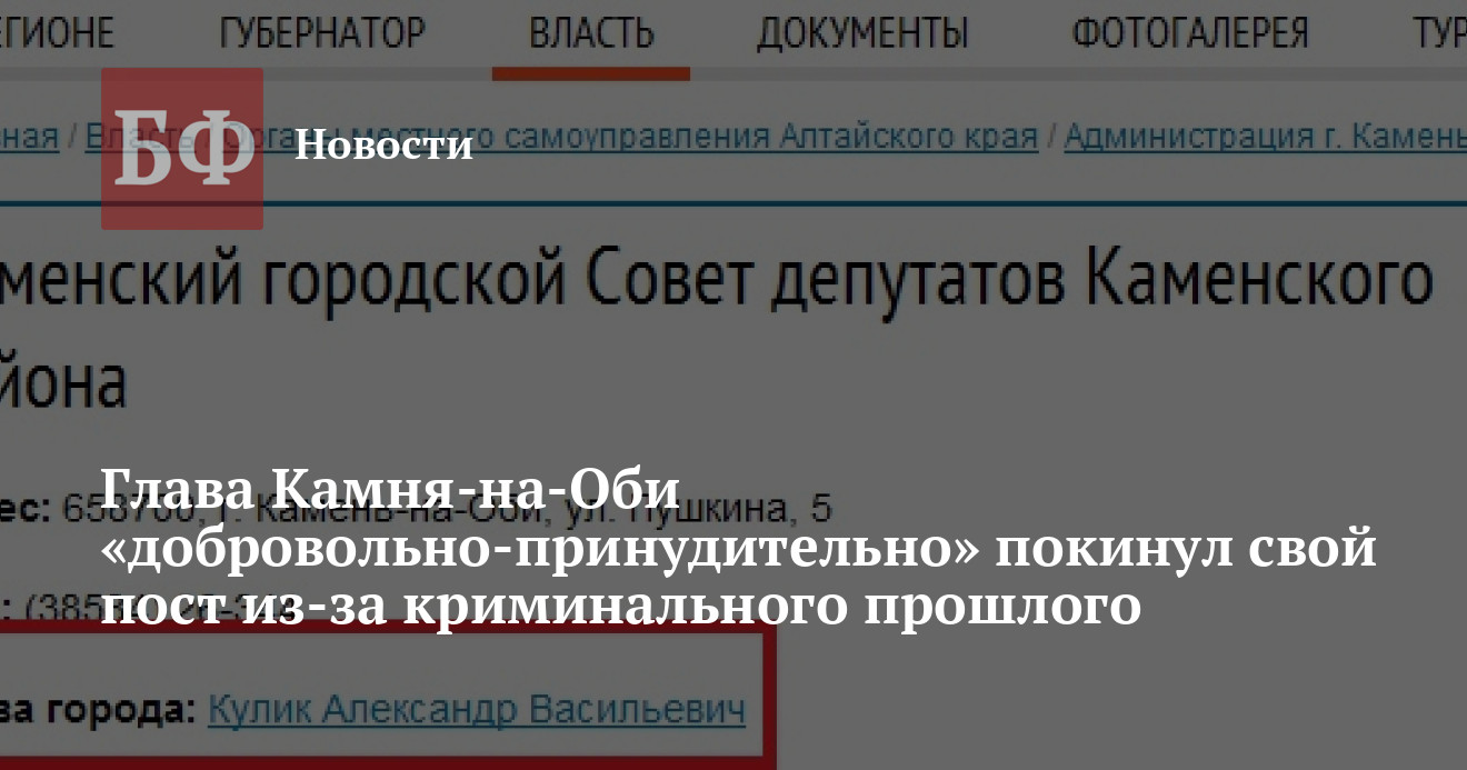 Интересно, что на сайте правительства Алтайского края Александр Кулик до сих пор указан в качестве градоначальника Камня-на-Оби, однако ссылка на биографию экс-чиновника уже удалена с портала.