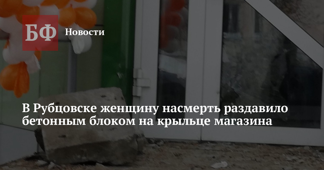 Днем 26 февраля в Рубцовске у трехэтажного дома по улице Калинина, 9 на женщину упал бетонный блок ориентировочным весом несколько сотен килограмм. От полученных травм потерпевшая скончалась на месте, сообщают очевидцы в соцсетях, а также знакомые с ситуацией источники ИА «Банкфакс».
