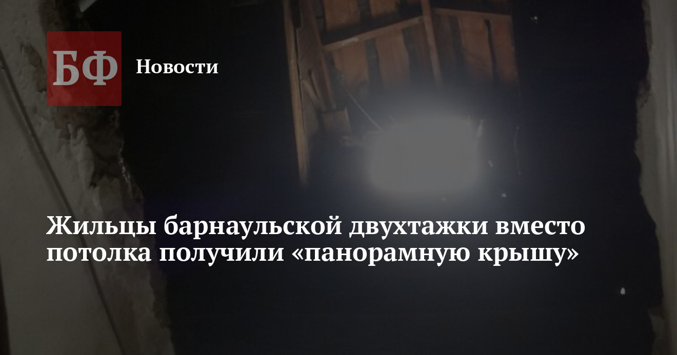 1 марта жительница Октябрьского района Барнаула Анастасия Буслаева сообщила в Сети, что в подъезде многоквартирного дома по адресу улица Тимуровская, 38 частично обрушился потолок. Никто из жильцов ветхого дома не пострадал, однако дыра в потолке продолжает зиять до сих пор, а представители УК лишь очистили подъезд от обвалившейся кровли.