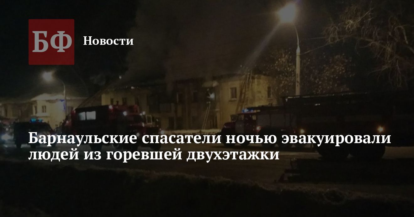 В пресс-службе ГУ МЧС по Алтайскому краю ИА «Банкфакс» уточнили, что сообщение о возгорании на пульт дежурного поступило в 4:03. На момент прибытия сотрудников МЧС горела крыша дома. 25 жильцов ветхого здания вовремя успели покинуть свои квартиры, им помогли спуститься по лестницам, а некоторых эвакуировали из окон второго этажа. Справиться с пламенем огнеборцам удалось только спустя полтора часа. В тушении принимали участие 46 человек и 15 единиц техники, в том числе сотрудники МЧС, полиции, «скорой помощи», газовой службы. Пожар полностью уничтожил кровлю и частично стены дома, насколько серьезно пострадали квартиры — пока неизвестно. Временным размещением горожан лично занялся глава администрации Железнодорожного района Барнаула. По предварительным данным, причиной пожара стало нарушение правил монтажа электрооборудования.