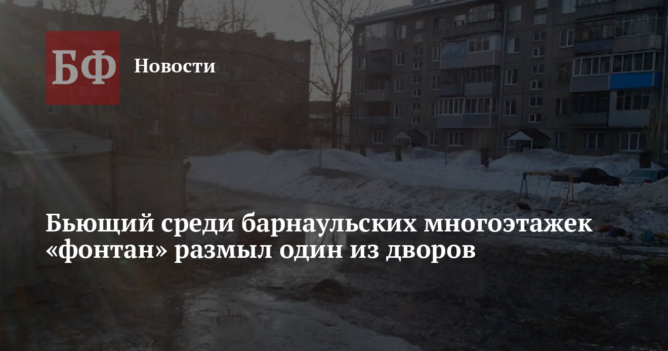 29 марта утром барнаульцы сообщили в Сети о коммунальной аварии по адресу улица Попова, 22. Они утверждали, что из-под земли начал бить фонтан, который в считанные минуты запрудил всю автостоянку во дворе.