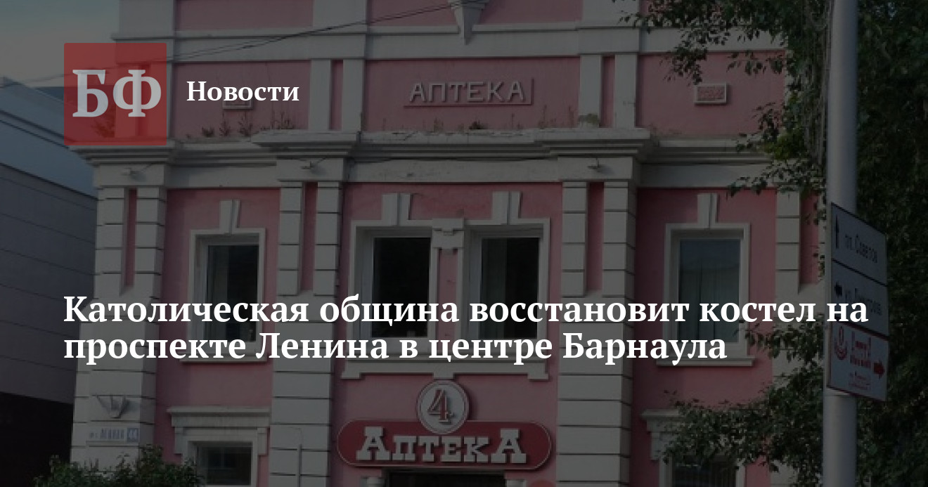 Градостроительный совет Барнаула одобрил эскизный проект восстановления и реставрации католического костела на проспекте Ленина, 44 в краевом центре. Зданию, которое сейчас занимает муниципальная «Аптека № 1», вернут исторический облик, причем реконструкция будет вестись в полном соответствии с изначальным проектом, который не был досконально реализован даже в начале XX века. Работы начнутся ориентировочно в конце 2017 года, рассказал на совете представитель компании «Альфа-проект» Владимир Ломакин.