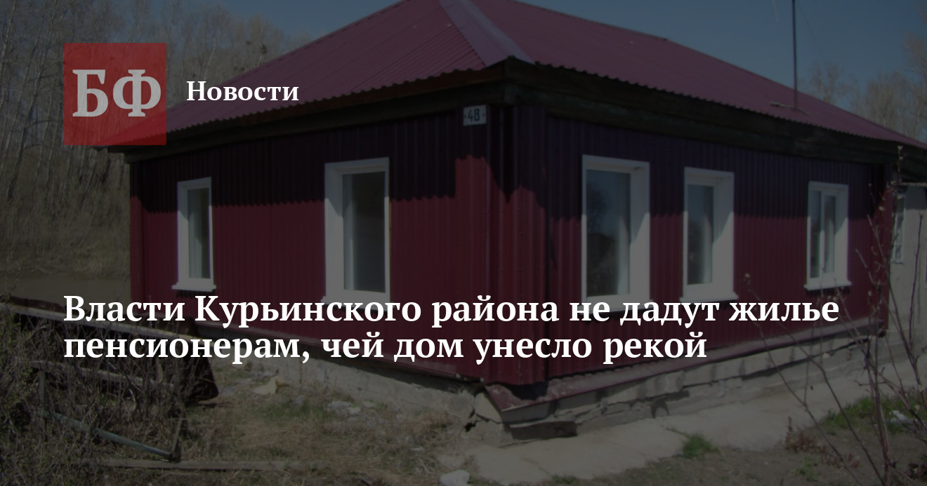 Власти Курьинского района отказались предоставлять жилье семье пенсионеров, у которых 27 апреля унесло дом рекой Локтевкой, несколько лет «подбиравшейся» к строению. По мнению чиновников, предотвращать инцидент было нецелесообразно, а сейчас помочь им почти нечем. Пенсионеры, если хотят, могут из бани, где они ютятся после инцидента, переехать к дочери и ее семье в однокомнатную квартиру в Барнаул, сообщил глава администрации района журналистам ГТРК «Алтай».