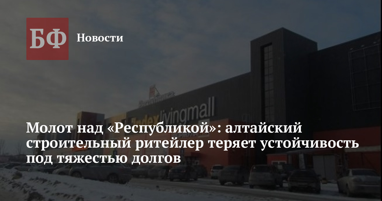 В Барнауле продают здание и земельный участок ТВК «Республика» на проспекте Космонавтов, 6 «г», который занимают строительные супермаркеты, магазины мебели и интерьеров. Этот объект — один из первых лотов бизнес-империи Бориса Заякина, занимающегося преимущественно строительным ритейлом, который может сменить владельца. Судя по банкротным производствам в отношении других юрлиц, подконтрольных бизнесмену, нельзя исключать смену собственников сетей «Аксиома», «Практика» и «Формула М2».