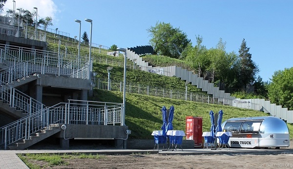 Тем временем барнаульские чиновники озаботились не только сохранностью нового объекта, но и комфортом для посетителей. Так, с 1 июня у подножия лестницы, ведущей в Нагорный парк, на специально оборудованной площадке начал работу фудтрак ООО «РунгисЪ». Жители города, отдыхающие на террасах, могут приобрести мороженое, прохладительные и горячие напитки, а также выпечку и продукцию быстрого питания. Поручение об организации точки дал сити-менеджер Сергей Дугин. Это было сделано якобы после многочисленных обращений в администрацию города от жителей.